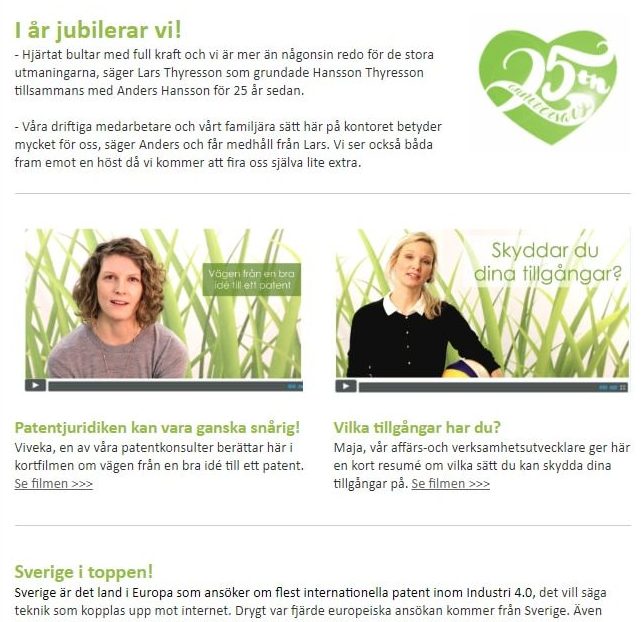 Våra nyhetsbrev skickas en handfull gånger per år för att hålla våra kunder och andra viktiga kontakter uppdaterade om branschnyheter. Vi bjuder också in till våra events och upplyser om vår framfart. Hör av dig till oss ifall du skulle vilja få våra nyhetsbrev i din mailkorg.